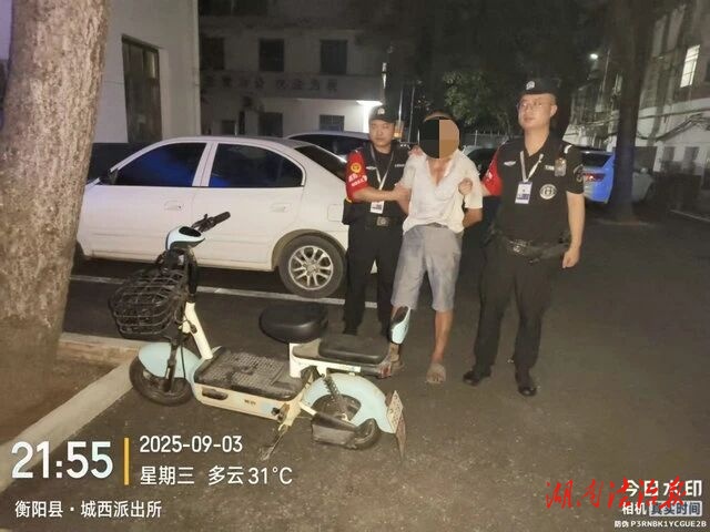 9月3日晚上九點多,衡陽縣公安局巡特警大隊一中隊在縣城夏明翰廣場附近開展夜間巡邏,發(fā)現(xiàn)一名男子獨自推著一輛未插鑰匙的電動車沿路邊緩慢行走,神情緊張,且不時左右張望,形跡極為可疑。巡邏民警察覺異常,立即上前對男子進行盤查。