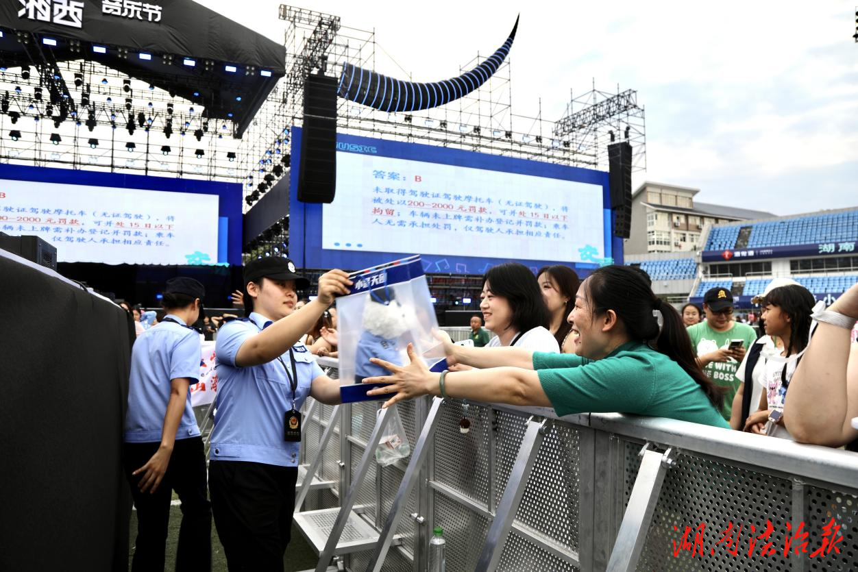 湖南法治報(bào)訊(通訊員 宋利華 田梅)山風(fēng)伴隨著律動(dòng),音符穿越山谷。10月2日至3日,“神秘湘西音樂(lè)節(jié)”在湘西職院文體會(huì)展中心開(kāi)演,激昂的演出、絢麗的舞臺(tái)和涌動(dòng)的人群構(gòu)成了一場(chǎng)視聽(tīng)盛宴。在星光璀璨的音樂(lè)節(jié)現(xiàn)場(chǎng),一場(chǎng)別開(kāi)生面的安全宣傳,更是讓人眼前一亮。湘西州公安局、吉首市公安局巧妙借助音樂(lè)節(jié)人流高峰,將反詐、交通兩大主題宣傳活動(dòng)與音樂(lè)節(jié)深度融合,實(shí)現(xiàn)了“安全知識(shí)隨節(jié)拍入耳,防范意識(shí)伴隨旋律入心”。