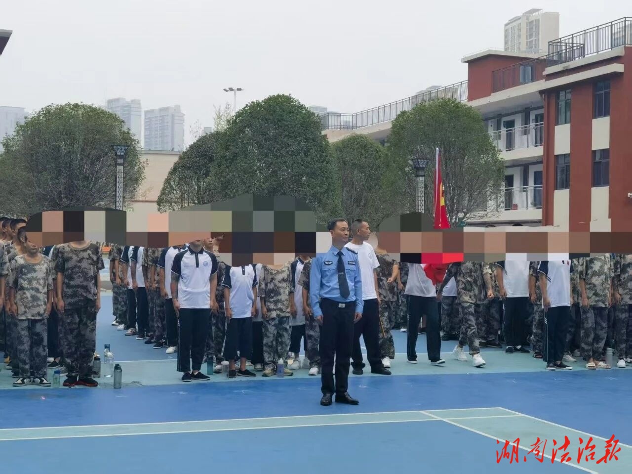 國慶節(jié)當天,衡陽市第十中學(專門學校)舉行升旗儀式,衡陽市強制隔離戒毒所四級高級警長、市第十中學黨組織負責人王啟生發(fā)表國旗下的講話。