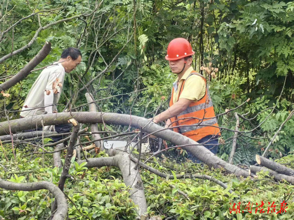 圖為巡查處置部工作人員對永州大道城區(qū)段死樹進(jìn)行集中清理