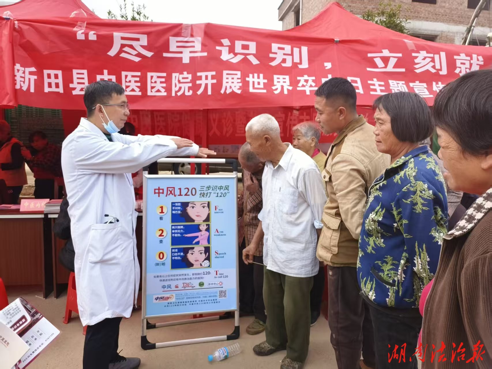 心腦血管內(nèi)科專家結(jié)合“世界卒中日”主題,針對老年人常見的高血壓、糖尿病、高血脂等卒中高危因素,利用宣傳展板,用通俗語言向群眾講解“中風(fēng) 120 識別法”:“1”看 1 張臉是否對稱,有無口角歪斜;“2”查 2 只胳膊是否肢體無力,抬舉困難;“0”(聆)聽語言,是否言語不清,表達(dá)困難。提醒他們一旦出現(xiàn)面部不對稱、手臂無力、言語不清等癥狀,應(yīng)立即撥打120急救電話,抓住黃金救治時間,引導(dǎo)大家樹立“重預(yù)防、早發(fā)現(xiàn)、早治療”的健康理念。
