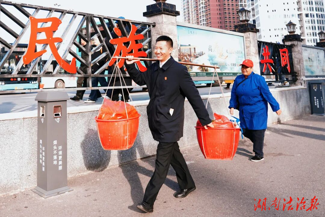 “龍婆婆,我來幫您!”在銅仁站出站口,法官助理肖楠眼見老人腿腳不便,便快步上前,接過她肩上的擔(dān)子。從站臺到市場一公里的路上,肖楠穩(wěn)穩(wěn)挑著擔(dān)子,不時提醒老人注意腳下。