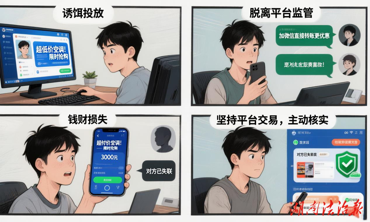 湖南法治報(bào)訊(通訊員 田宏安)2025年12月初,花垣縣花垣鎮(zhèn)石某在某聊天軟件上被添加好友,對(duì)方向其推薦對(duì)方公司的空調(diào)等產(chǎn)品,其相信對(duì)方后就花了3千余元向?qū)Ψ焦举?gòu)買(mǎi)了兩臺(tái)空調(diào),其在網(wǎng)上給對(duì)方轉(zhuǎn)賬后,一直未收到對(duì)方公司的空調(diào),遂發(fā)覺(jué)被騙。