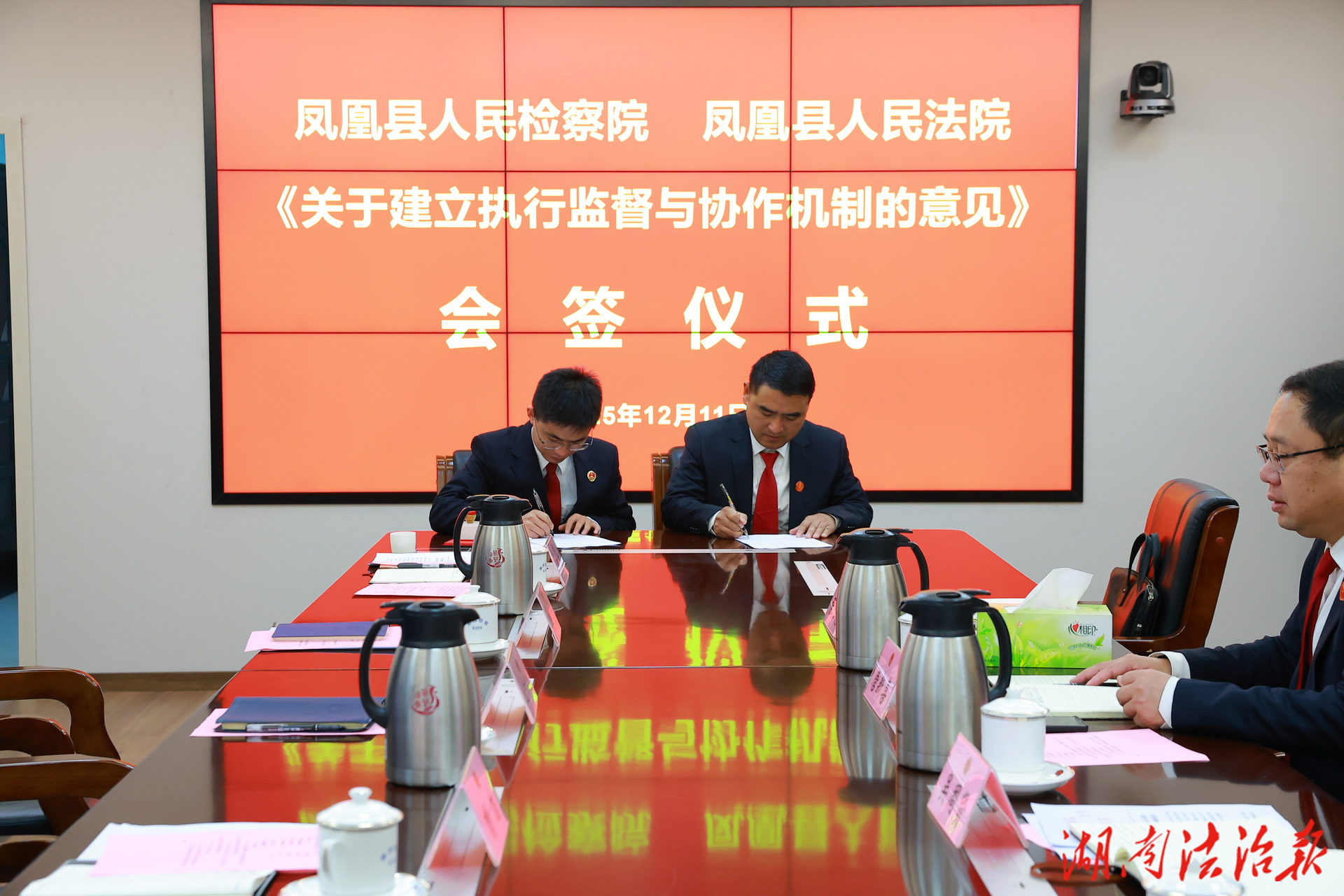 湖南法治報訊(通訊員 歐佳華)12 月 11 日,鳳凰縣人民檢察院與鳳凰縣人民法院舉行《關于建立執(zhí)行監(jiān)督與協(xié)作機制的意見》(以下簡稱《意見》)會簽儀式,以務實舉措貫徹習近平法治思想,落實《中共中央關于加強新時代檢察機關法律監(jiān)督工作的意見》要求,推動解決“執(zhí)行難”問題,筑牢司法公正最后防線。